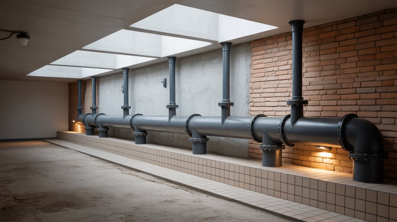 - Gravity Soil Stacks: Vertical pipes designed to transport waste by gravity from building fixtures to municipal sewers.